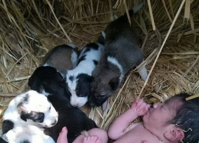 نوزاد تازه متولد شده ای که در کنار چند توله سگ رها شده بود نجات و تحویل ماموران پلیس شد.