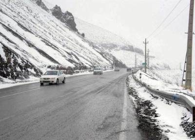 جاده کرج ، چالوس برفی و بارانی می گردد